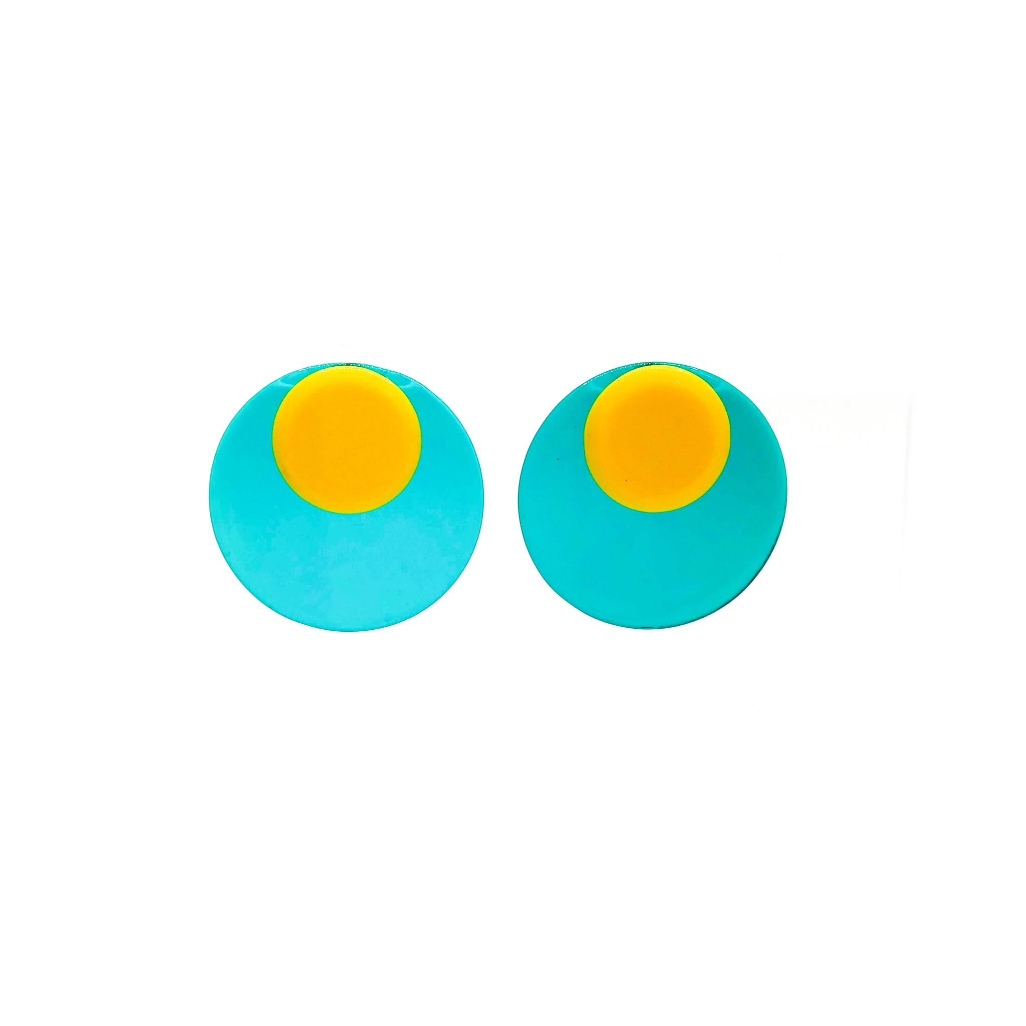 ダブルラウンド クリアポップピアス グリーンとイエロー アクセサリー カラフル ポップ 春夏アクセサリー